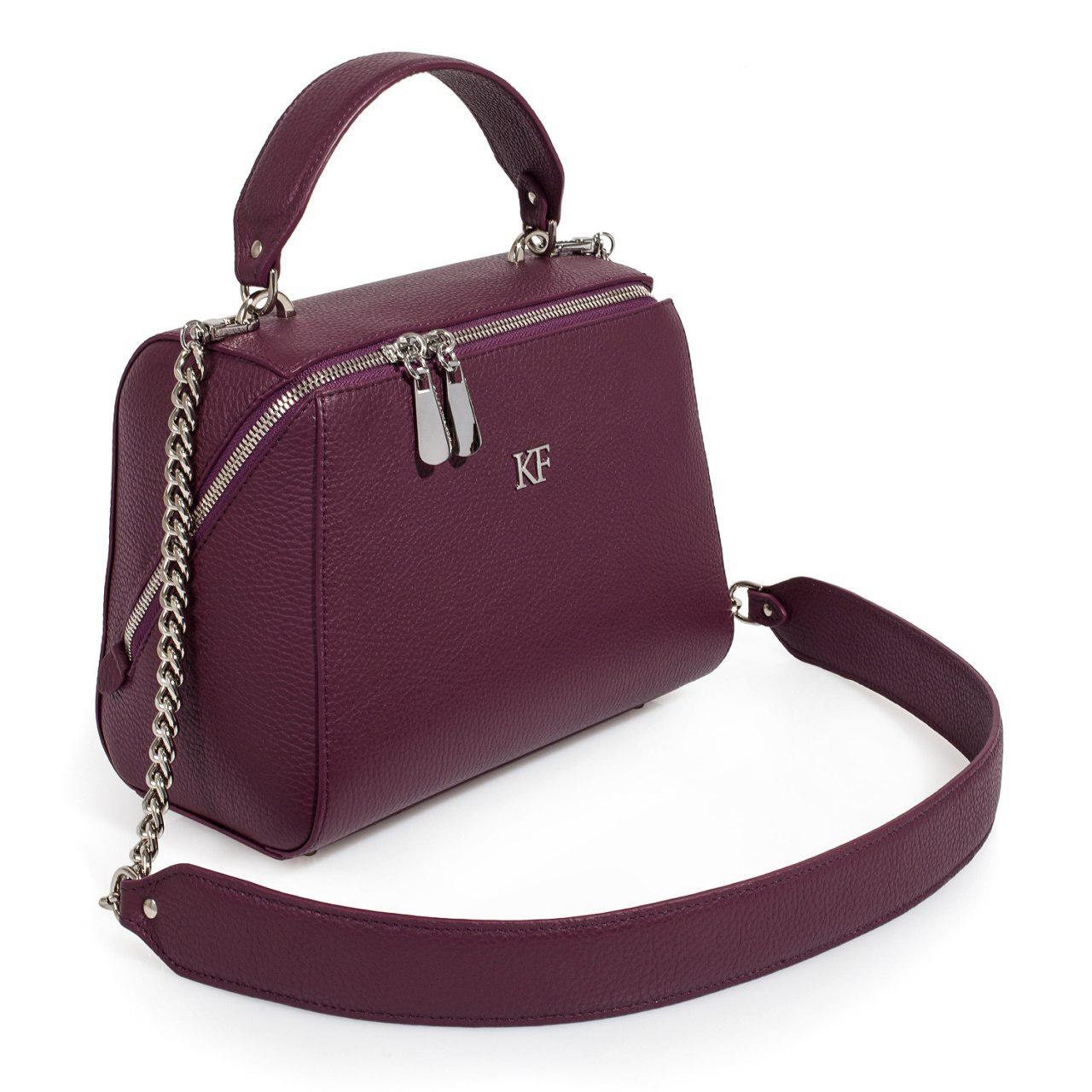 Leather Top Handle Bag, Violet (Blackberry) Leather Handbag Top Handle, Women's Leather Bag KF-3068