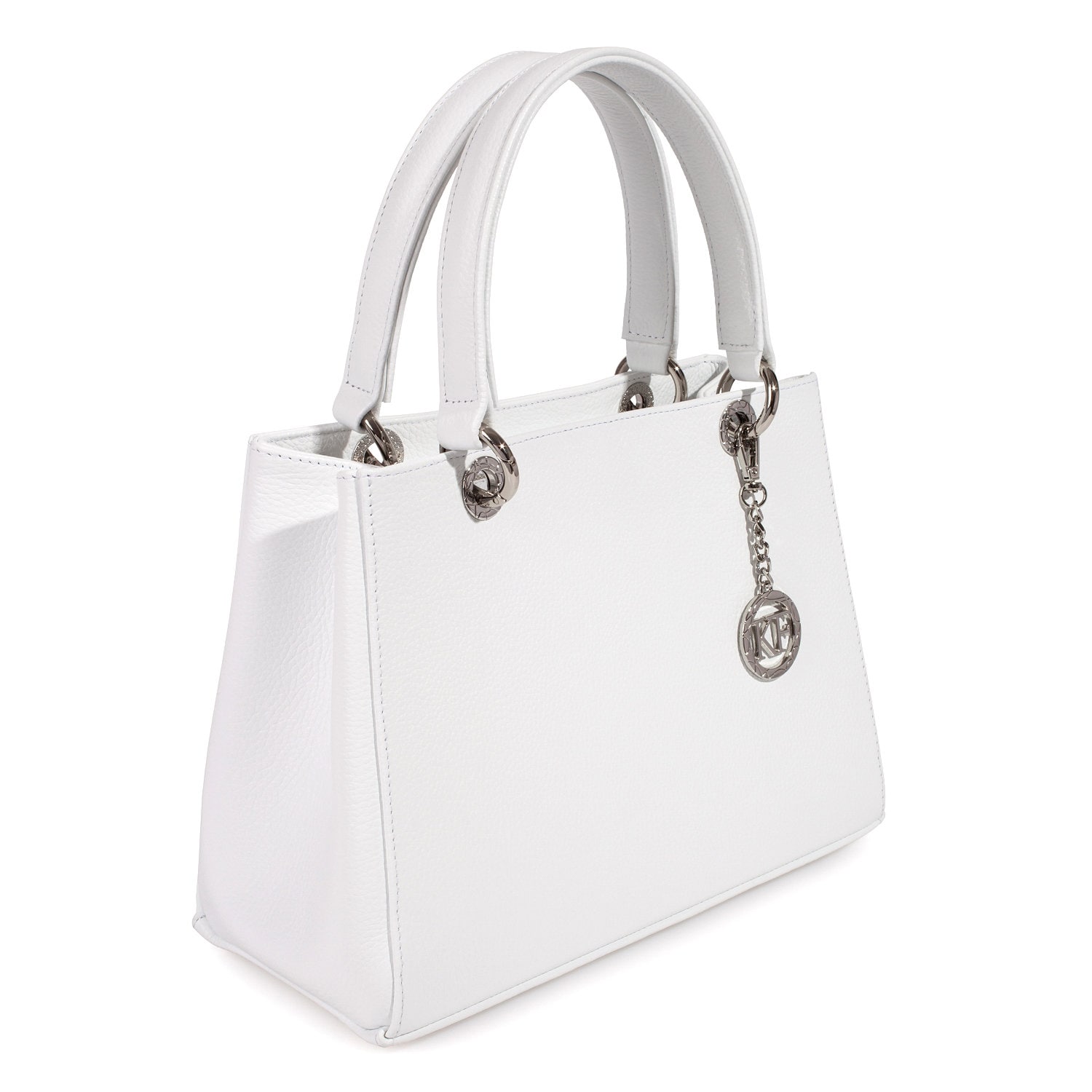 Leather Top Handle Bag, White Leather Handbag Top Handle, Women's Leather Bag KF-3685