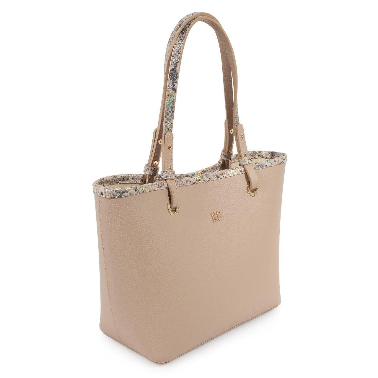 Leather Tote Bag, Beige (powder) Leather Tote Bag, Women's Leather Tote Bag KF-3470