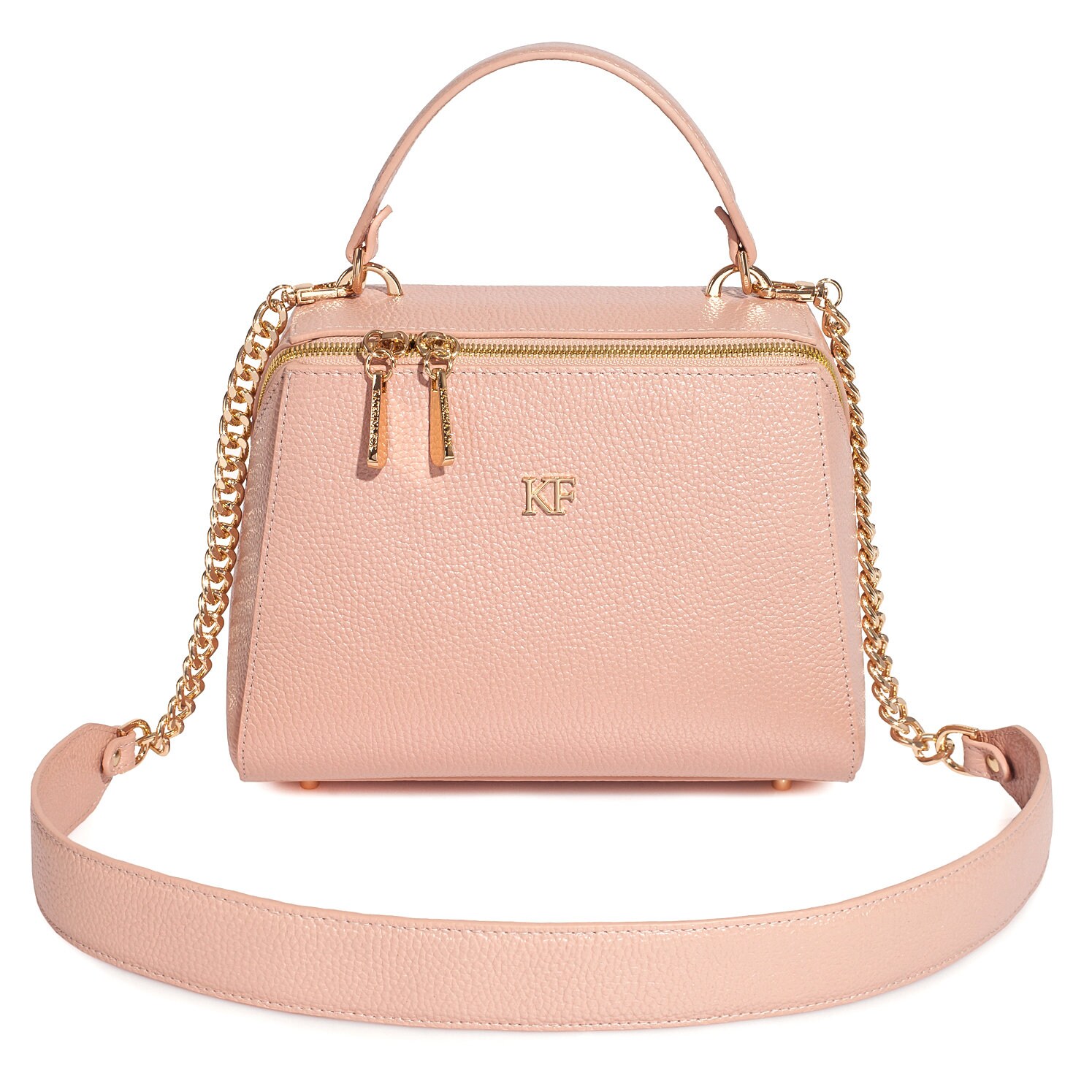 Blackberry genuine leather handbag from Ukrainian designer Katerina Fox. The internal space of a bag is equipped with three spacious compartments and two patch-pockets and one zipper pocket. One of the spacious compartments is closed with a zipper. The bag is closed with a clasp. The bottom of the bag is protected with metal legs. There is a long handle that allows you to wear the bag on the shoulder. The kit also includes a storage bag.