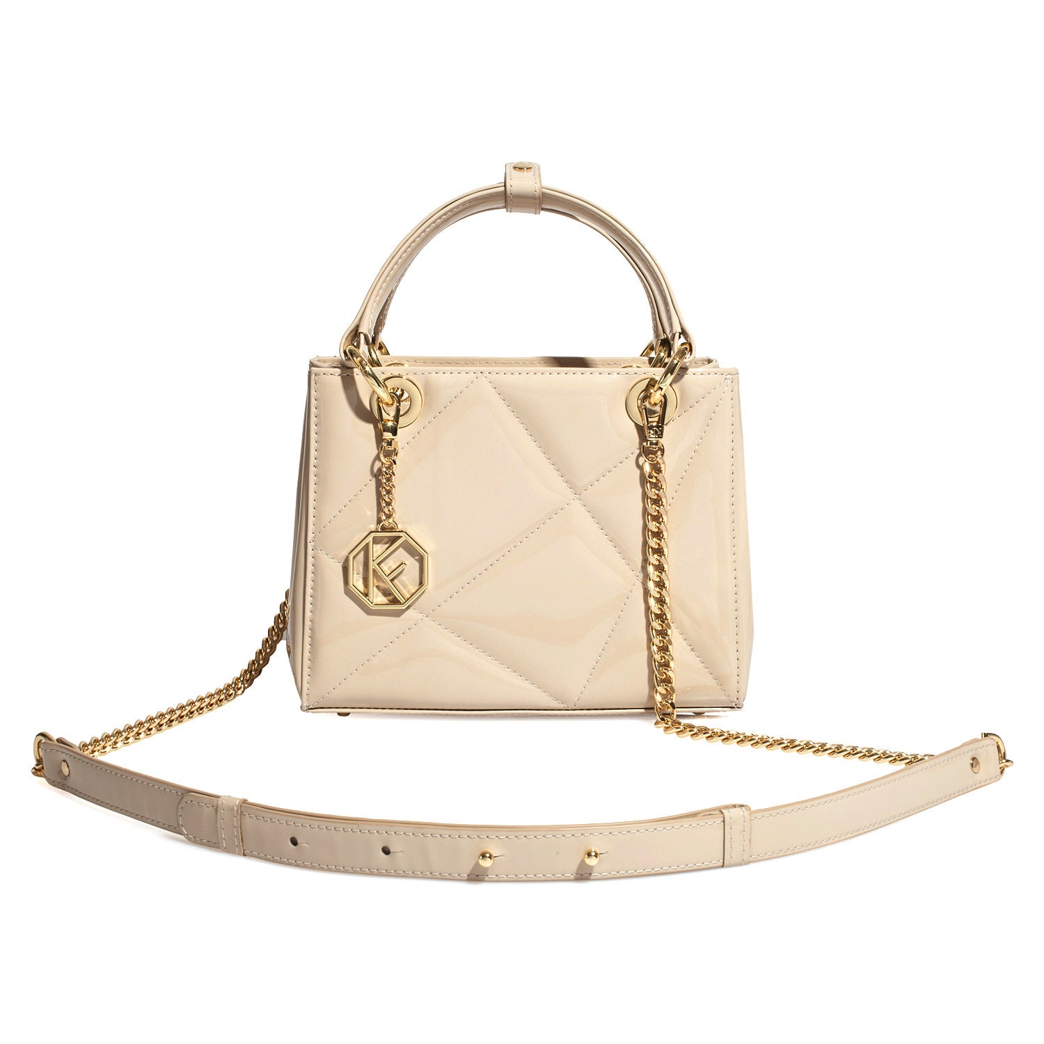 Women's leather bag made of genuine leather, hardware with galvanic coating and microfiber lining. The internal space of a bag is equipped with three compartments, one compartment and two side pockets, one with a zipper. §³loses with 3 magnet buttons. The bottom of the bag is protected with metal legs. There is a long handle that allows you to wear the bag on the shoulder. The kit also includes a storage bag.