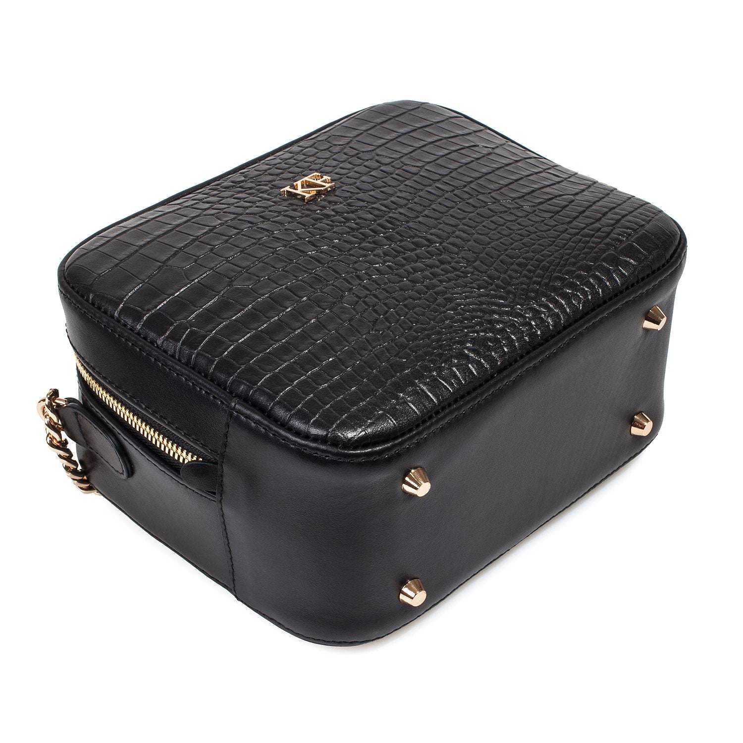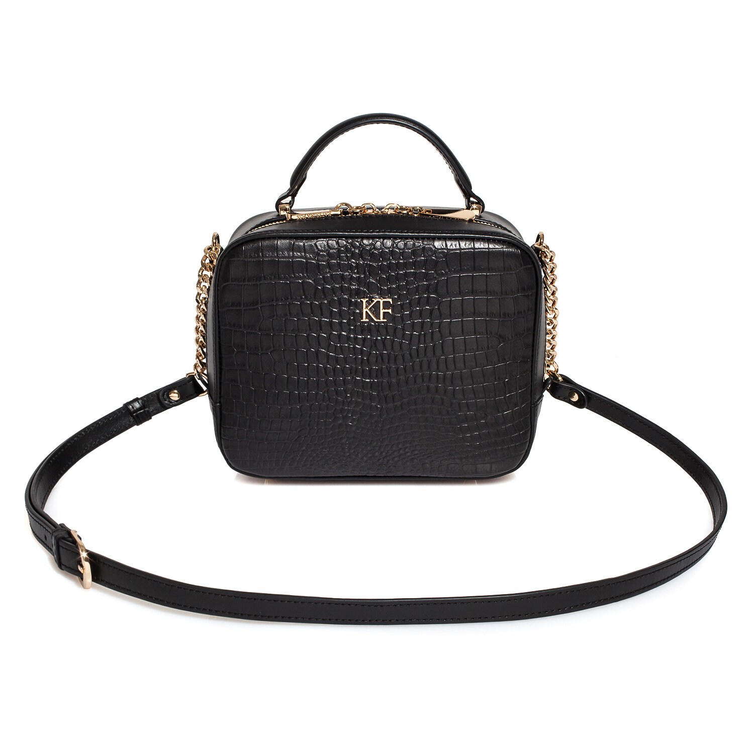 Black genuine leather woman shoulder bag from ukrainian designer Katerina Fox. Fashionable and elegant modern bag KF for bright girls and women. This bag is able to attract attention and highlight your exquisite taste. The internal space of a bag is equipped with one spacious compartment and one zipper pocket. The bag is closed with a zipper. The length of the strap is adjustable. The kit also includes a storage bag.