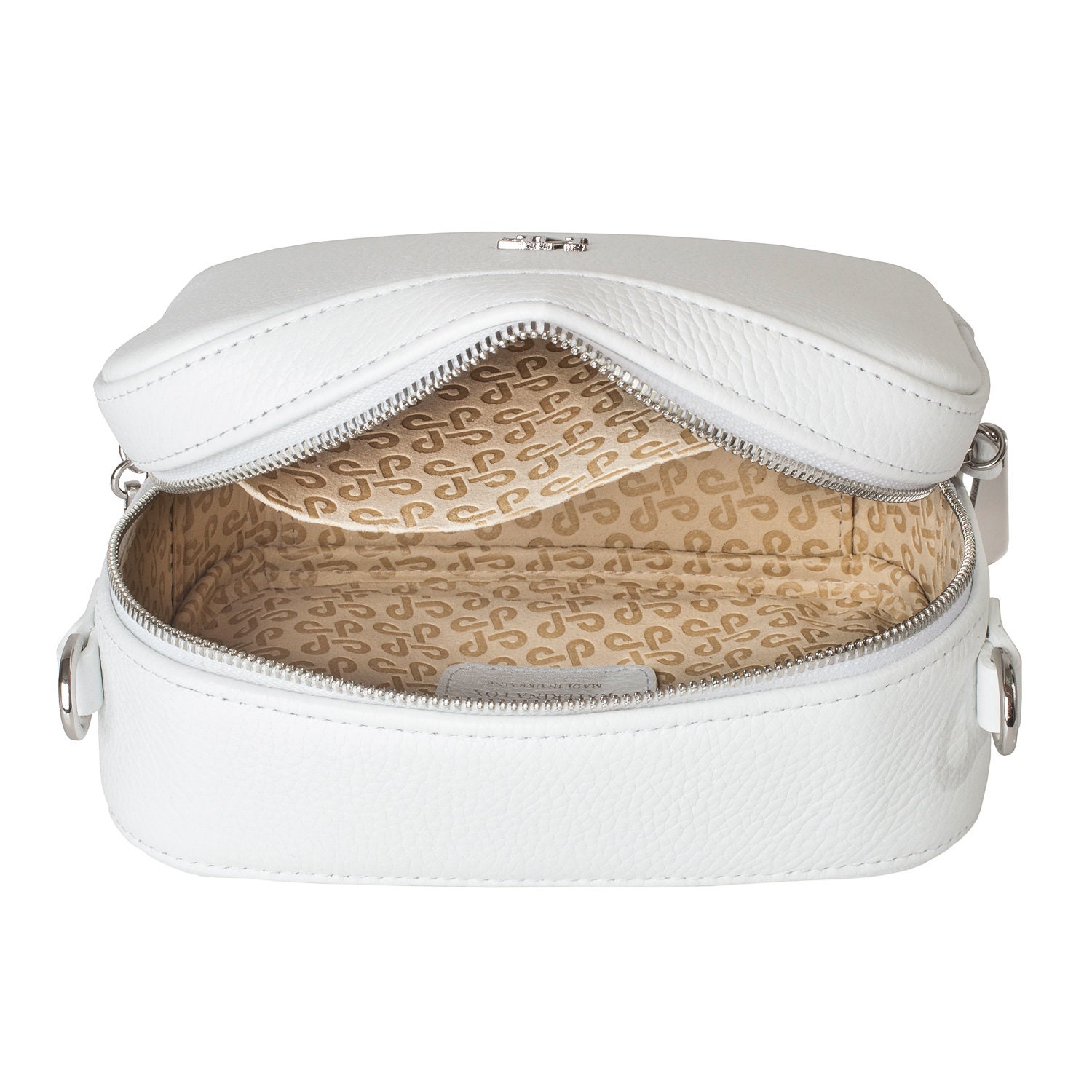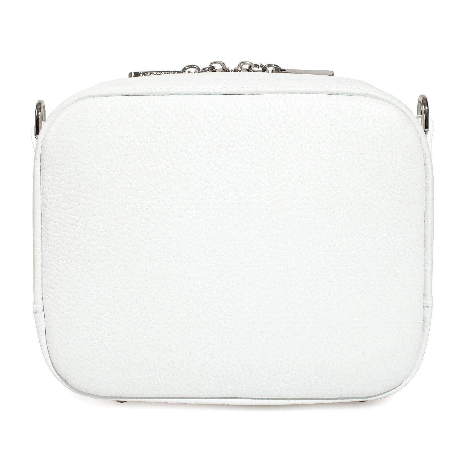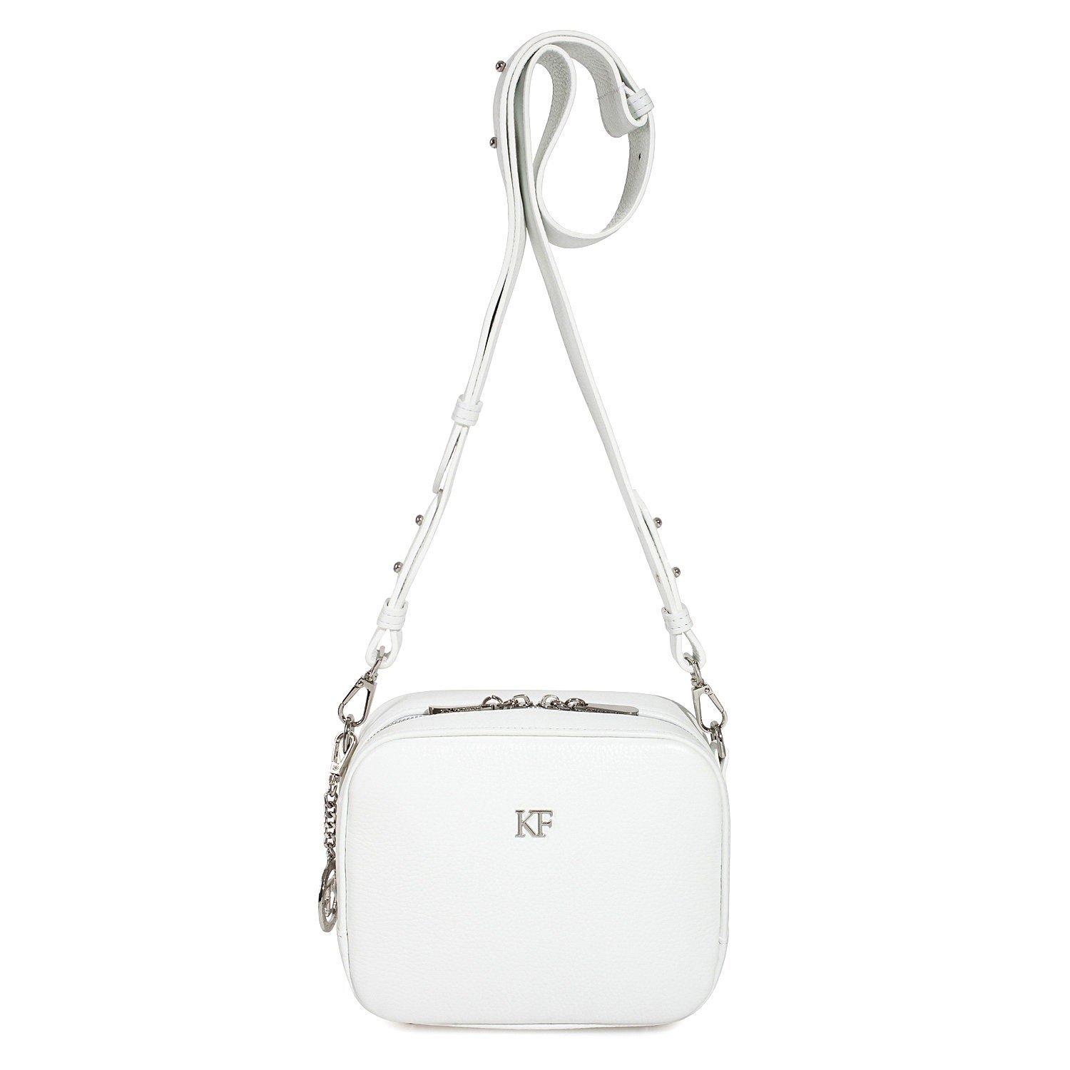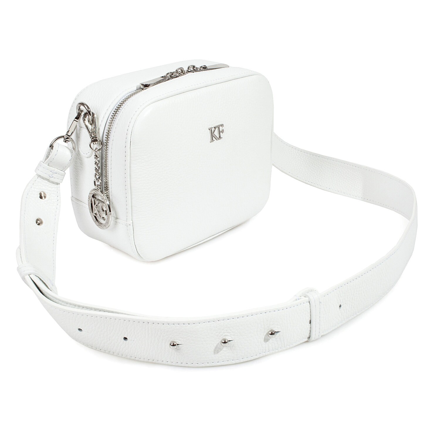 White genuine leather woman shoulder bag from ukrainian designer Katerina Fox. Fashionable and elegant modern bag KF for bright girls and women. This bag is able to attract attention and highlight your exquisite taste. The internal space of a bag is equipped with one spacious compartment and one zipper pocket. The bag is closed with a zipper. The length of the strap is adjustable. The kit also includes a storage bag.