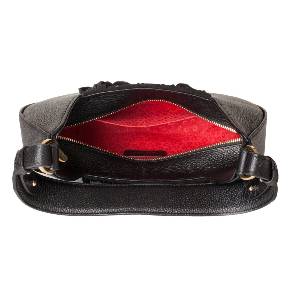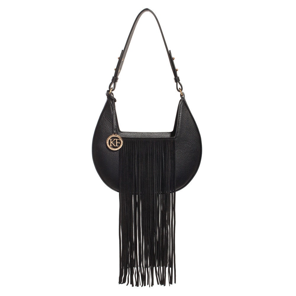 Black genuine leather woman shoulder bag from ukrainian designer Katerina Fox. Fashionable and elegant modern bag KF for bright girls and women. This bag is able to attract attention and highlight your exquisite taste. Inside the bag is one large compartment and two pockets for a small items, close the bag on the zip. The bag is comfortable to wear on the shoulder.