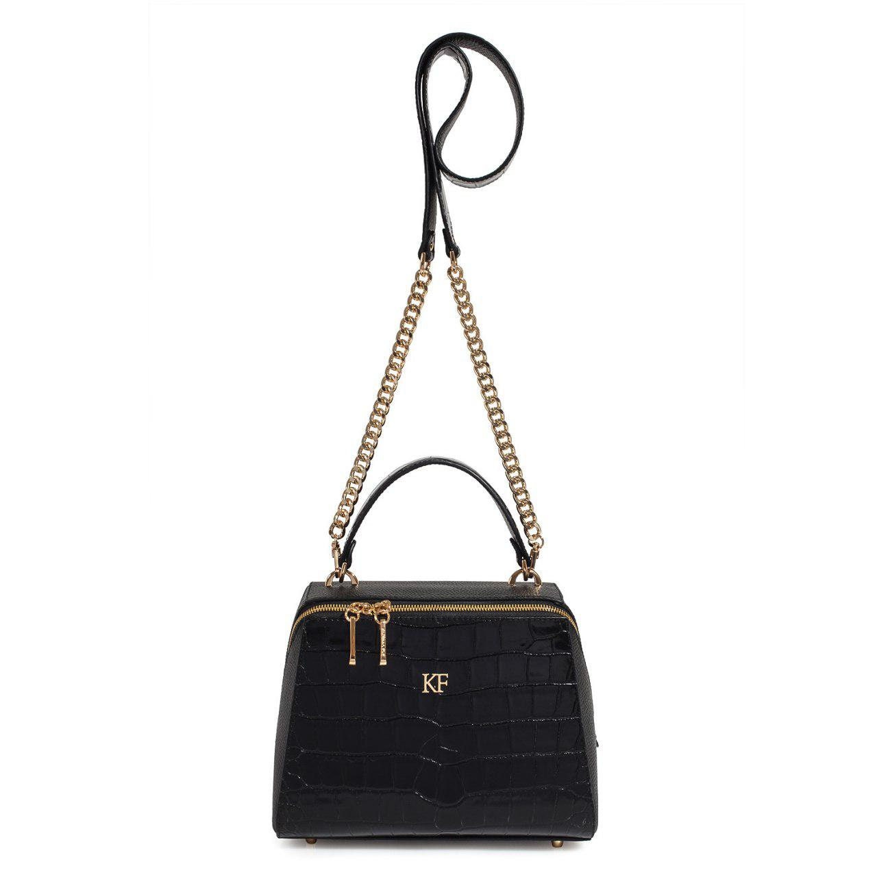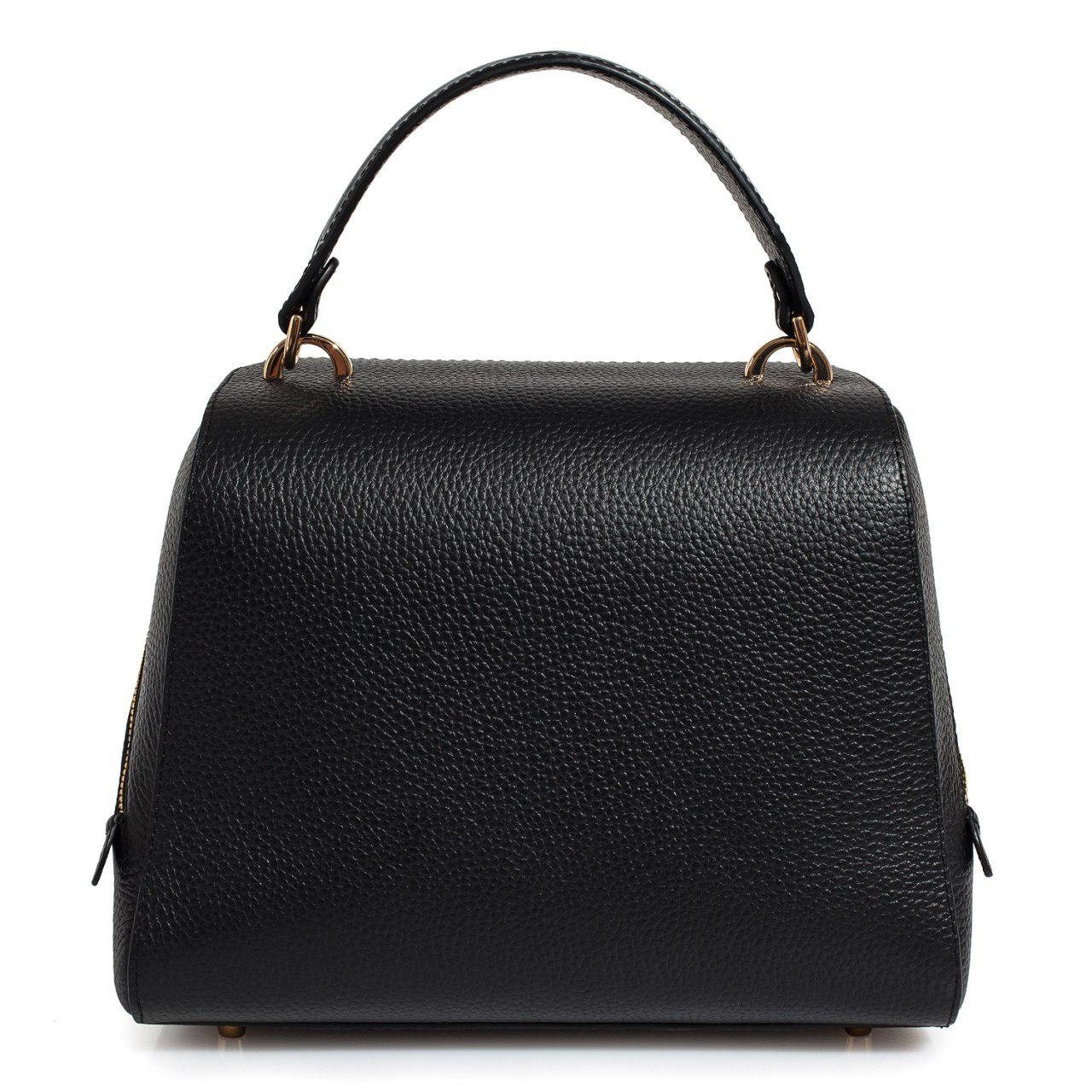 Black genuine leather handbag from ukrainian designer Katerina Fox. This model is designed for women who appreciate the sleek design combined with functionality and comfort. High-quality and reliable hardware ensure long service bags. The internal space of a bag is equipped with one spacious compartment and two patch-pockets and one zipper pocket. The bag is closed with a zipper. The bottom of the bag is protected with metal legs. There is a long handle that allows you to wear the bag on the shoulder. The kit also includes a storage bag.