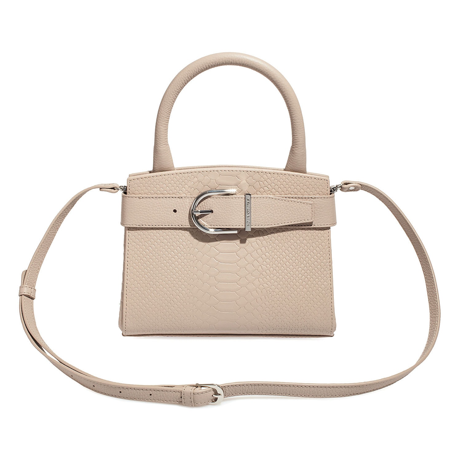 Women's leather bag made of genuine leather, hardware with galvanic coating and microfiber lining. The internal space of a bag is equipped with three compartments, one compartment and two side pockets, one with a zipper. §³loses with 3 magnet buttons. The bottom of the bag is protected with metal legs. There is a long handle that allows you to wear the bag on the shoulder. The kit also includes a storage bag.
